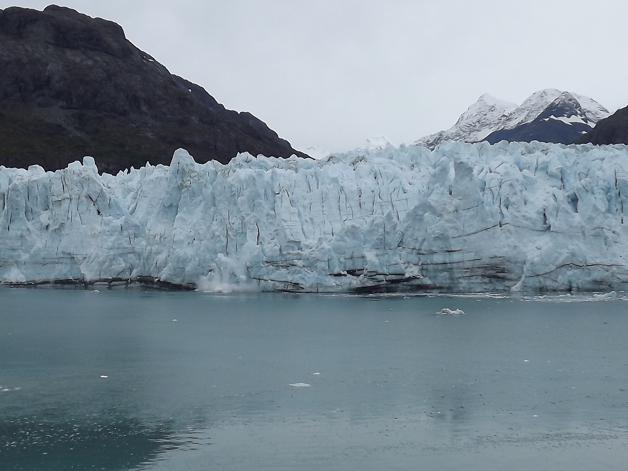 It is a time of reflection and appreciation for many. Then, as if on cue a loud report rings out. It can be anything from a crack like a rifle shot to the explosive report of a cannon. Anyone knowing what the sound means looks for the source of the noise. They are hoping to see a glacier calve an iceberg. It does not matter that icebergs in Glacier Bay will be small and will melt fairly quickly, hearing and seeing ice split away from the Glacier is the ultimate prize on this part of the trip.